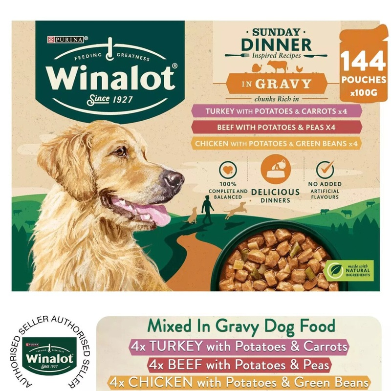 144 X Winalot Wet Dog Food Sunday Dinner Mixed In Gravy, 8 Months-6 Years 100G