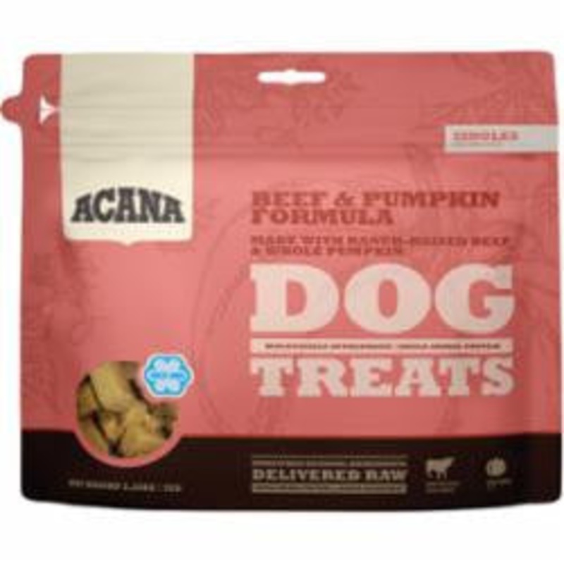 Acana Singles Beef & Pumpkin Dog Treats are freeze-dried treats for dogs packed with goodness and full of natural flavor. They contain one single, easily digestible animal protein (ranch-raised Beef) and Kentucky pumpkin so you can reward your dog accordi