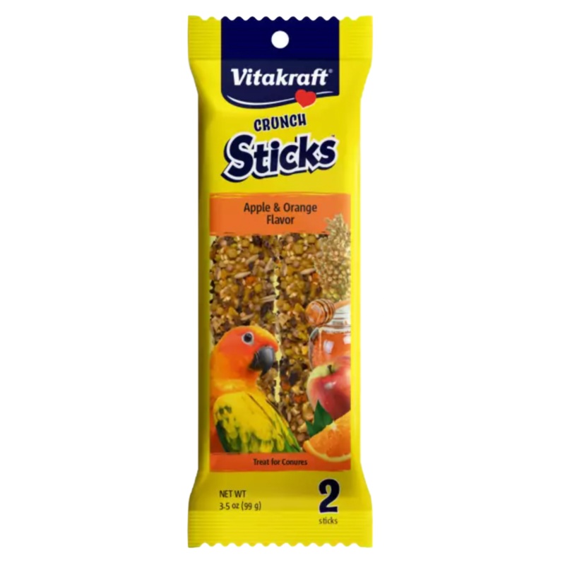 Vitakraft Crunch Sticks Apple &orange flavor are long-lasting baked treats made with real wholesome apples, oranges, and honey. These treats help support your bird's beak health and provide important stimulation to prevent boredom. The triple-baked layers