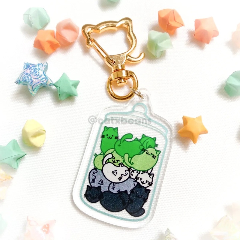 Aromantic Jelly Cat Beans in Jar Pride Flag Acrylic Keychain