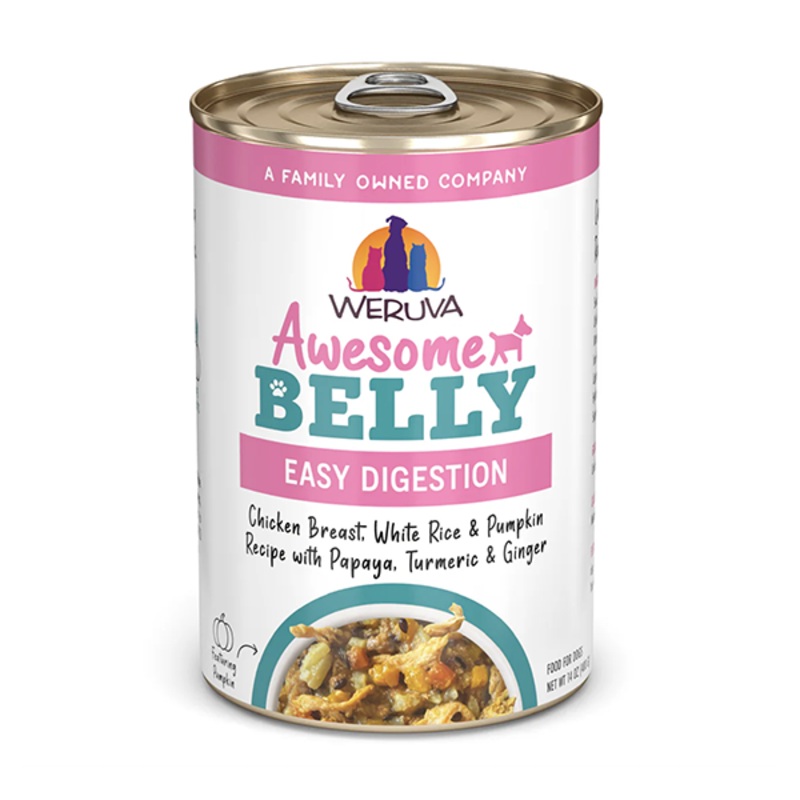 Awesome Belly Easy Digestion Chicken Breast, White Rice & Pumpkin Recipe with Papaya, Turmeric & Ginger Wet Canned Dog Food 14oz cans, case of 10
