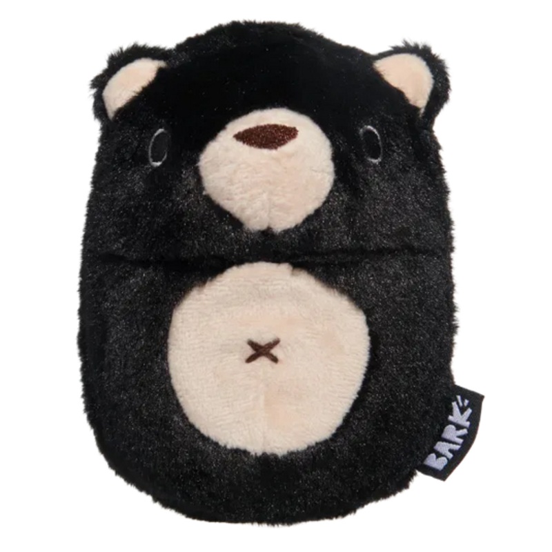 If you see this bear dog toy in the wild, experts say dogs should roll over and show him their bellies. Black Bear Bones is made of natural rubber and has all the playtime necessities with a wacky wobble base that keeps him rolling, bouncing, and spinning. Just be sure to squeak it loudly in case there are cubs nearby. FEATURES: BARK Super Chewer Black Bear Bones black bear rubber dog toy Hidden Toy Inside! Rip through the fabric to reveal a hidden toy underneath! Made with a squeaker for extra excitement. Wacky wobble design to keep pups on their toe beans. Hidden Toy Inside! Rip through the fabric to reveal a hidden toy underneath!