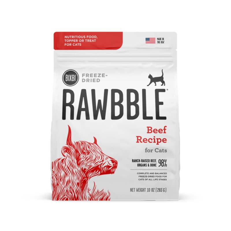 A raw diet for your cat doesnt need to be hard! BIXBI Rawbble Freeze-Dried Food for Cats Beef Recipe combines the whole-animal nutrients of raw food with the convenience of kibble. With 98% beef, organs, and bone to give your cat a healthy source of protein, Rawbble uses freeze-dried technology to lock more naturally sourced essential nutrients into every bite. Complete and balanced to serve as a stand-alone food or as an irresistible topper or treat.