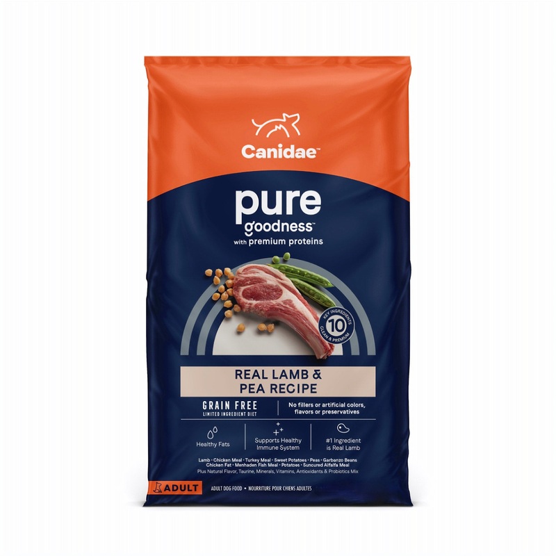 Available in other sizes 4lb size 22lb size~ Canidae Pure Elements Grain-Free Fresh Lamb Dry Dog Food is the perfect whole food meal for adult dogs. This recipe features just ten key ingredients along with a healthy blend of natural flavors, vitamins, mine