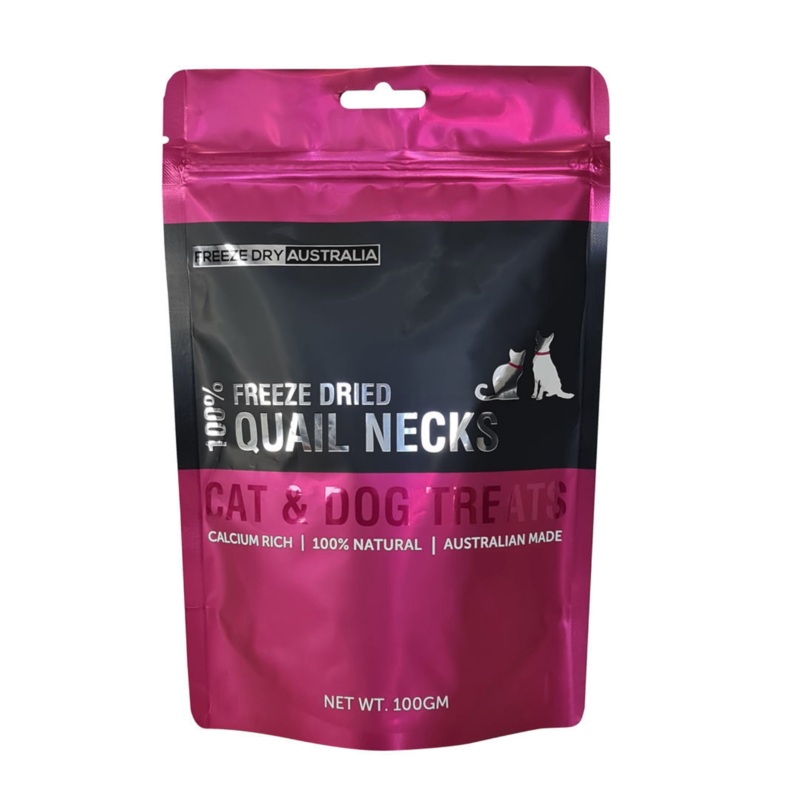 All Australian Quail necks are well desired treat that smaller Dogs and Cats will enjoy.Quail neck treats are small sized treats, they are a source of Niacin, Vitamin B6, Iron, Phosphorus, Copper and Selenium and a very good source of protein, making it a