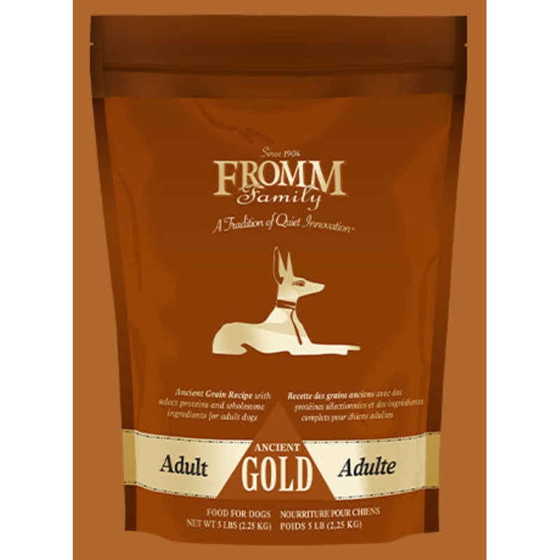 DescriptionFromm Dog Food - Ancient Gold Dry Adult Dog Food was formulated with select proteins and whole grain goodness to provide your normally active adult dog with complete and balanced nutrition. This product is enhanced with probiotics to aid digesti