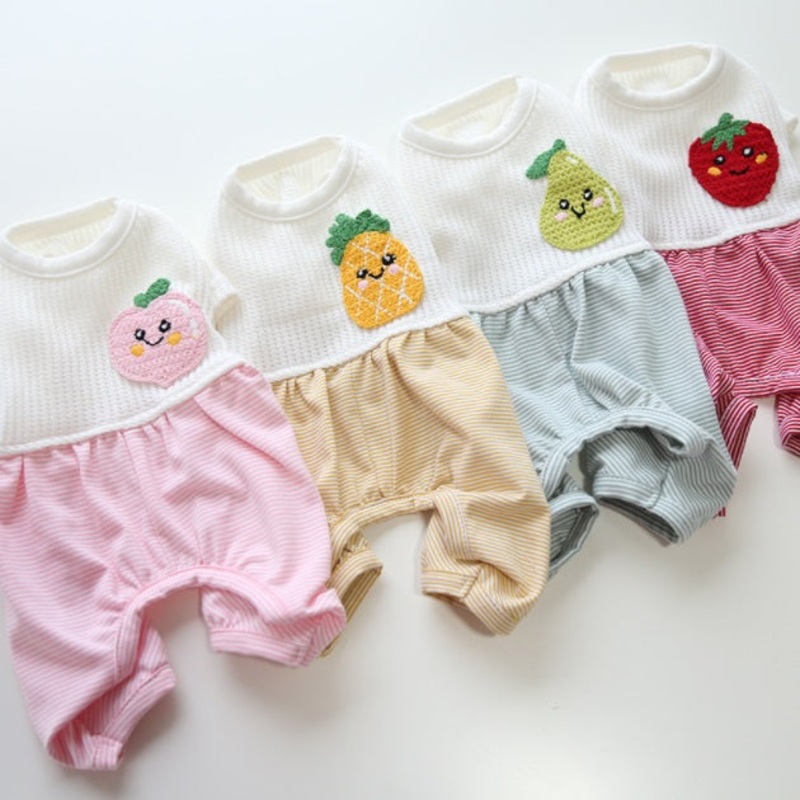 Cotton all in one/ pyjamas.Size XXS 6" BACKSize XS 8" BACKSize S-10" BACKSize -M-12" BACKSize -L-14" BACKSize XL- 15/16" BACKMake sure you measure your pet before purchase! We are specialised for small to medium breeds only! If you need size advise please