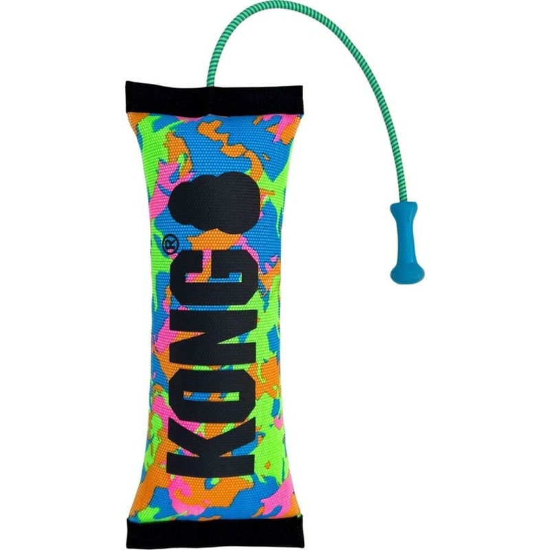 The KONG Bunji High-Viz Bumper is specially designed with bright colors and contrasting patterns for high visibility in various environments, weather, and terrain. Heavy duty firehose material, webbing-sealed edges, and bungee rope makes this toy perfect f