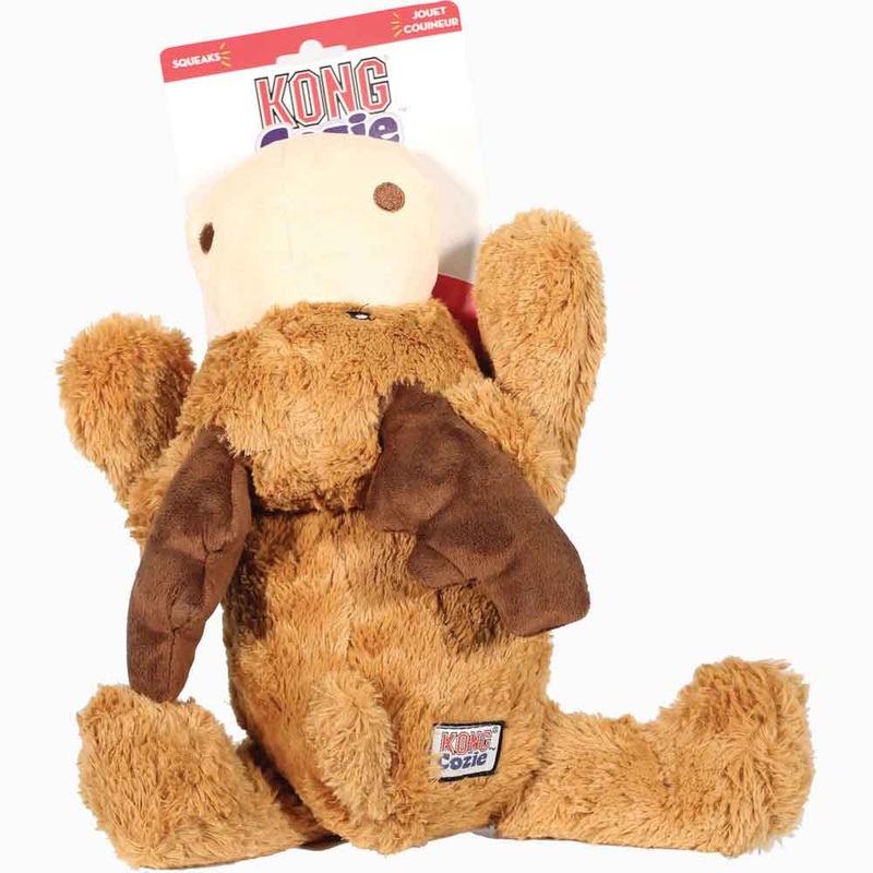 KONG Cozies are soft cuddly toys that provide the comfort of a security blanket! The fun moose shape includes an internal squeaker for added fun! Features an extra layer of material for added support and reduced filling for less mess! Great for tossing and