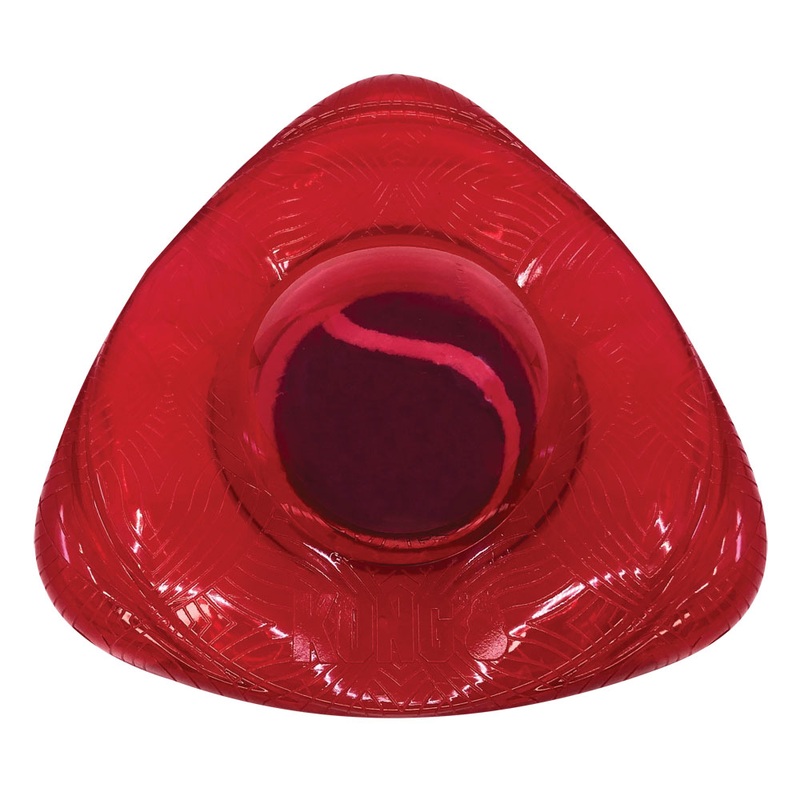 KONG Jumbler Flingers rolling interior tennis ball and loud squeak spark tug-and-fetch fun with an aerodynamic toy with a big bounce that launches dogs into tons of healthy, active fun.This durable Jumbler is built to last through tough play sessions with