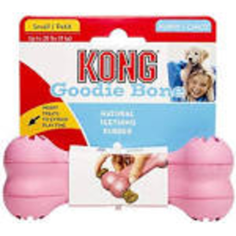 The KONG Puppy Goodie Bone engages puppies that are learning appropriate chewing behavior. Made from the KONG Classic unique puppy rubber, this bone fulfills instinctual needs to chew while easing aching teeth and gums. KONG Goodie Grippers turn this enter