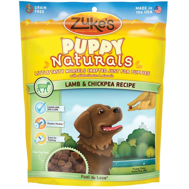 Zuke's Puppy Naturals are the perfect snack for your new best friend! Each tiny snack is sized right for their smaller stature and includes ingredients designed to aid growth and development. They include protein, vitamins and DHA/EPA to help brain and eye