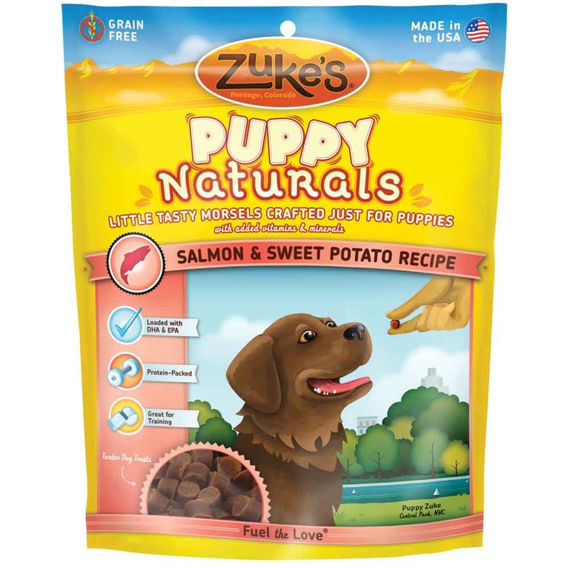 Zuke's Puppy Naturals are the perfect snack for your new best friend! Each tiny snack is sized right for their smaller stature and includes ingredients designed to aid growth and development. They include protein, vitamins and DHA/EPA to help brain and eye