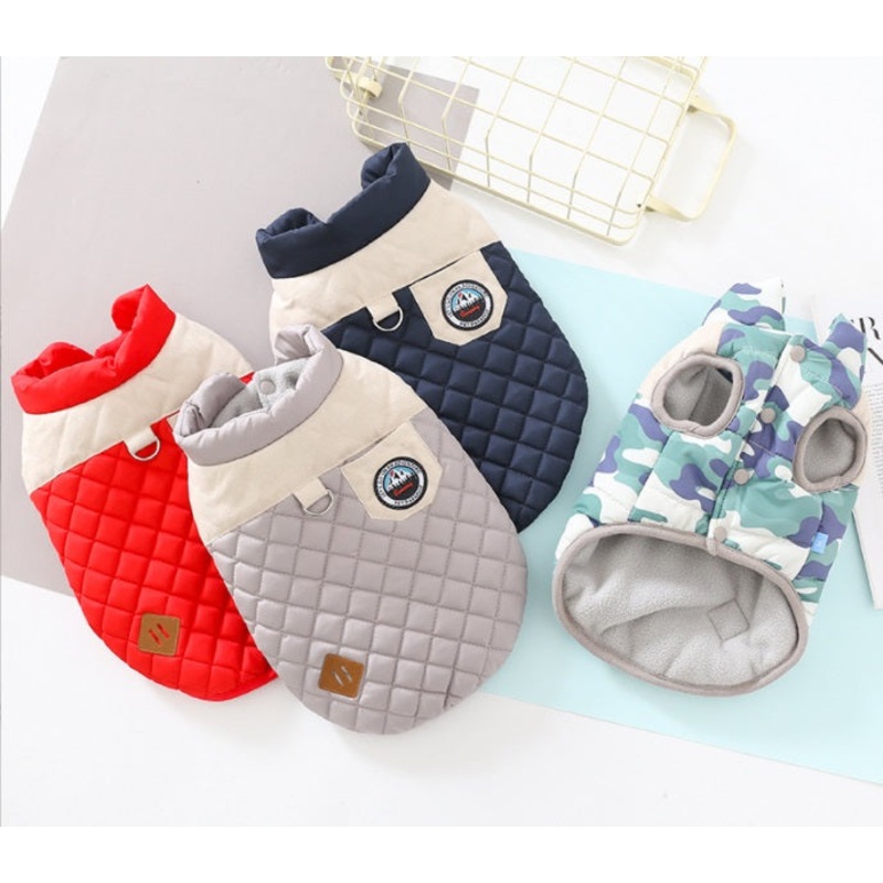 Warm jacket, poppersSize XS 8" BACKSize S-10" BACKSize -M-12" BACKSize -L-14" BACKSize XL- 15/16" BACKPlease be aware, D ring jacket is not a harness, if your dog push a lot it is not safe to use just coat with a D ring, you will need a safe harness.Make s