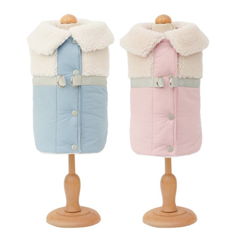 Warm jacket, poppers D ringSize XS 8" BACKSize S-10" BACKSize -M-12" BACKSize -L-14" BACKSize XL- 15/16" BACKPlease be aware, D ring jacket is not a harness, if your dog push a lot it is not safe to use just coat with a D ring, you will need a safe harness