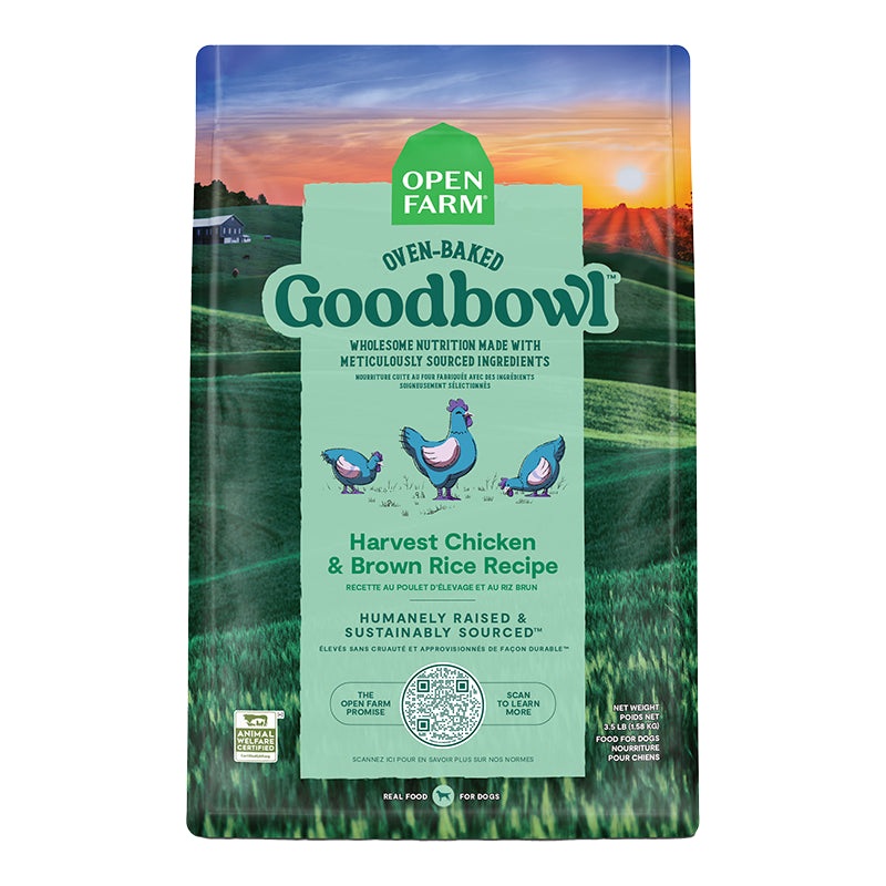Goodbowl Harvest Chicken & Brown Rice Recipe for DogsThis Goodbowl recipe features oven-baked, wholesome kibble made with meticulously sourced, simple ingredients to provide optimal nutrition to your dog. This recipe is made with humanely raised chicken as