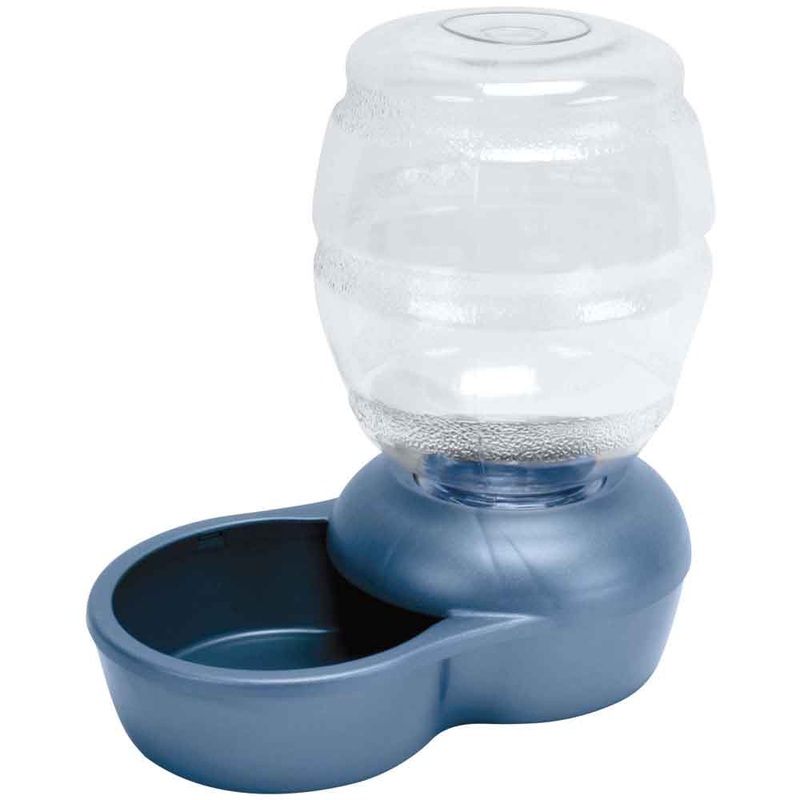 With a Pet Mate Replendish gravity fed waterer, you'll never have to worry if they have enough water in their bowl. The feeder at the top holds 1 gallons. The Microban-lined base prevents the growth of stain and odor-causing bacteria, ensuring a healthy, g