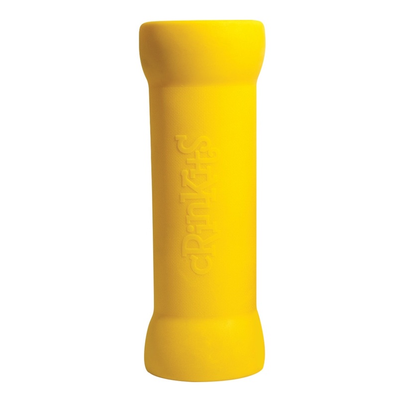 Crunchy rubber and water-bottle retrieving toy. It floats and crunches! The Crinkly-Crunchy sound and feel dogs love! Crinkit noisemaking water-bottle toy is made with our durable solid FDA-approved rubber shell encasing an empty water bottle. Dogs get all the long-lasting crunching they love without harming their mouth! In assorted high-visibility neon colors. Water bottle is replaceable and recyclable. Our toys are 100% made in the USA!