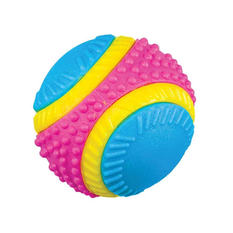 The Sensory Ball is a fun toy that stimulates each of your dog's five senses -- sight, hearing, taste, smell and touch!. Made of durable non-toxic rubber, the bouncy ball does it all:Sight: Each ball features a bright multi-colored assortment!Hearing: Come