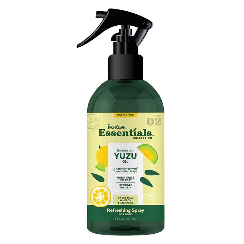 Enrich your pets skin and coat with hand-selected, naturally derived ingredients found in TropiClean Essentials Collection. Specially formulated Yuzu oil spray for dogs helps moisturize and hydrate your pets skin and coat. Yuzu oil adds its hydrating natur