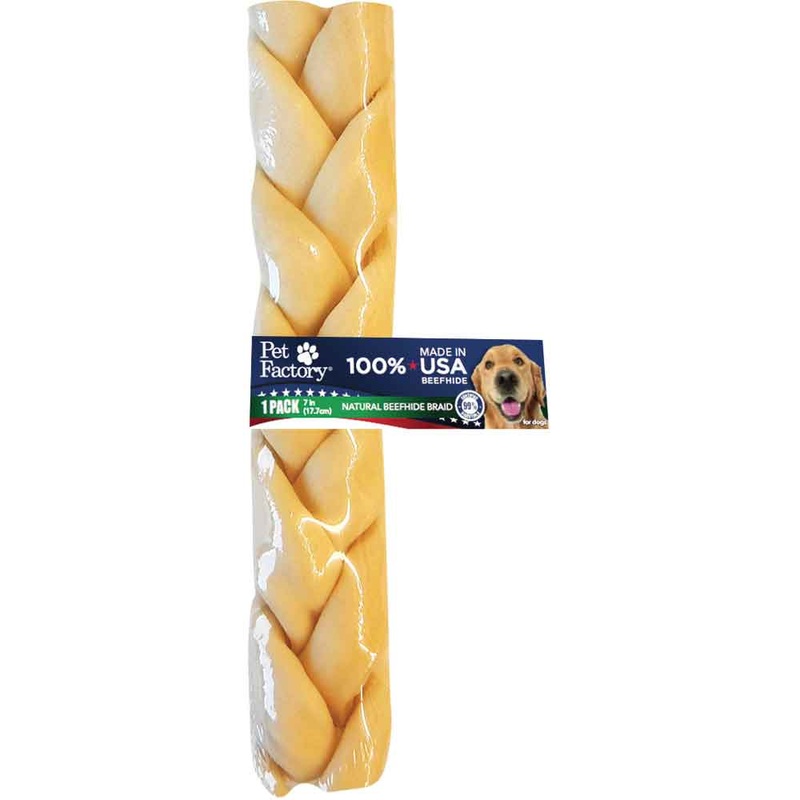 100% USA-made and sourced beefhide braids your dog will find irresistable! Made with the highest quality American beefhide for thicker, longer-lasting chews.
