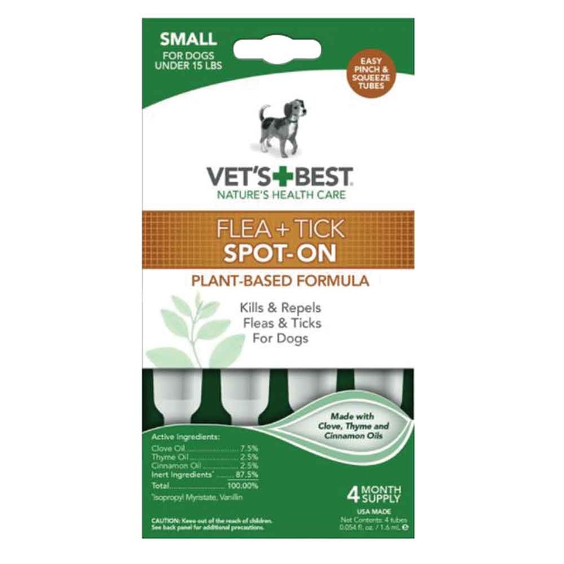 Vets Best Flea and Tick Spot-On is ideal for monthly protection from fleas and ticks. Each dose kills and repels fleas and ticks for up to one month. Other features include: Easy to Open, Pinch-and-Squeeze tubes can easily be applied between dogs shoulder