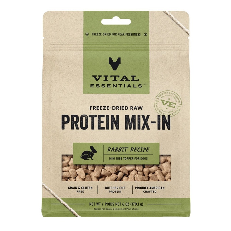 VITAL ESSENTIALS – FD MINI NIBS PROTEIN MIX-IN RABBIT TOPPER 6OZ.