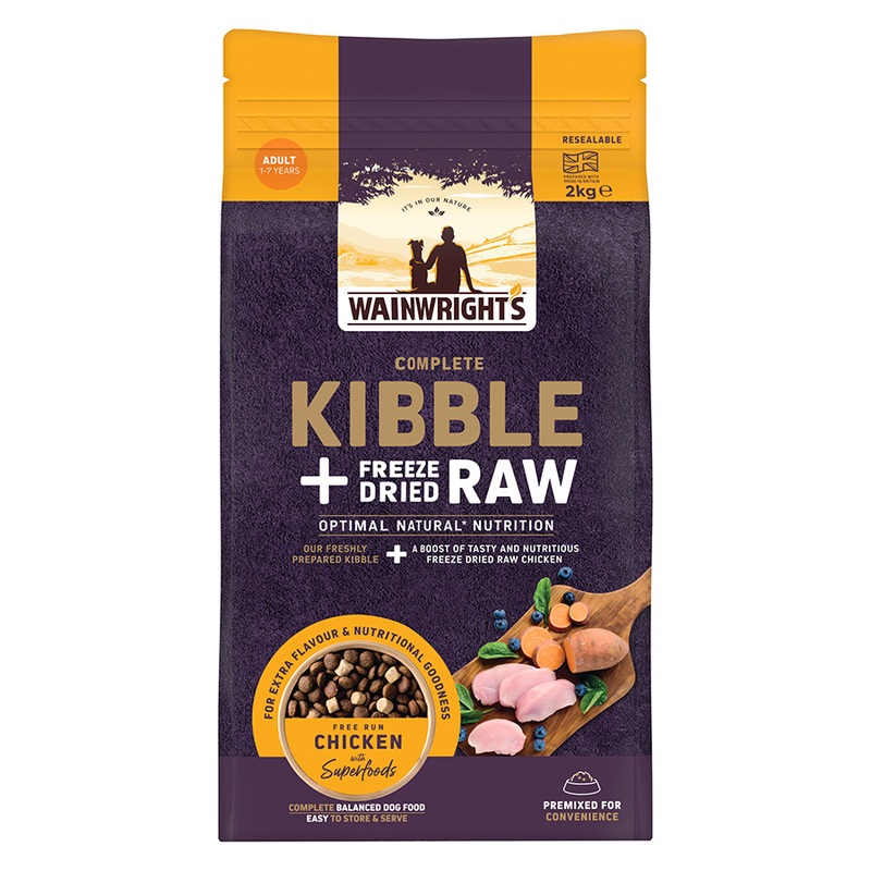 Wainwrights Complete Kibble + Freeze Dried Raw Dry Adult Dog Food Chicken 2Kg