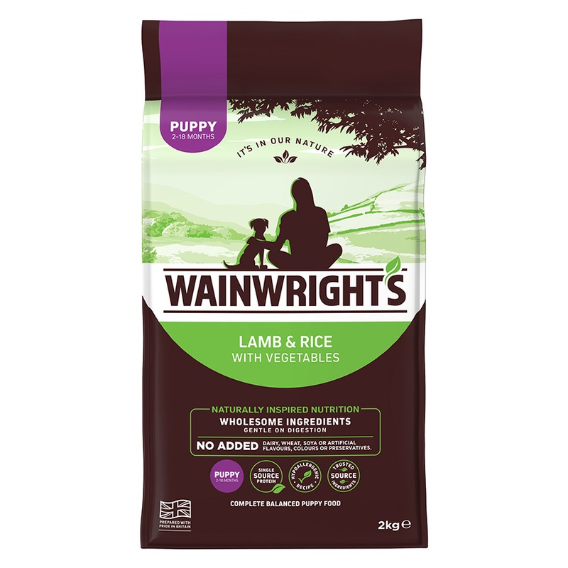 Wainwright's Puppy Lamb and Rice with Vegetables is a complete balanced dry food made with a single source protein that your puppy will love. Made with a hypoallergenic recipe with no added wheat, dairy, soya or artificial flavours, colours or preservative