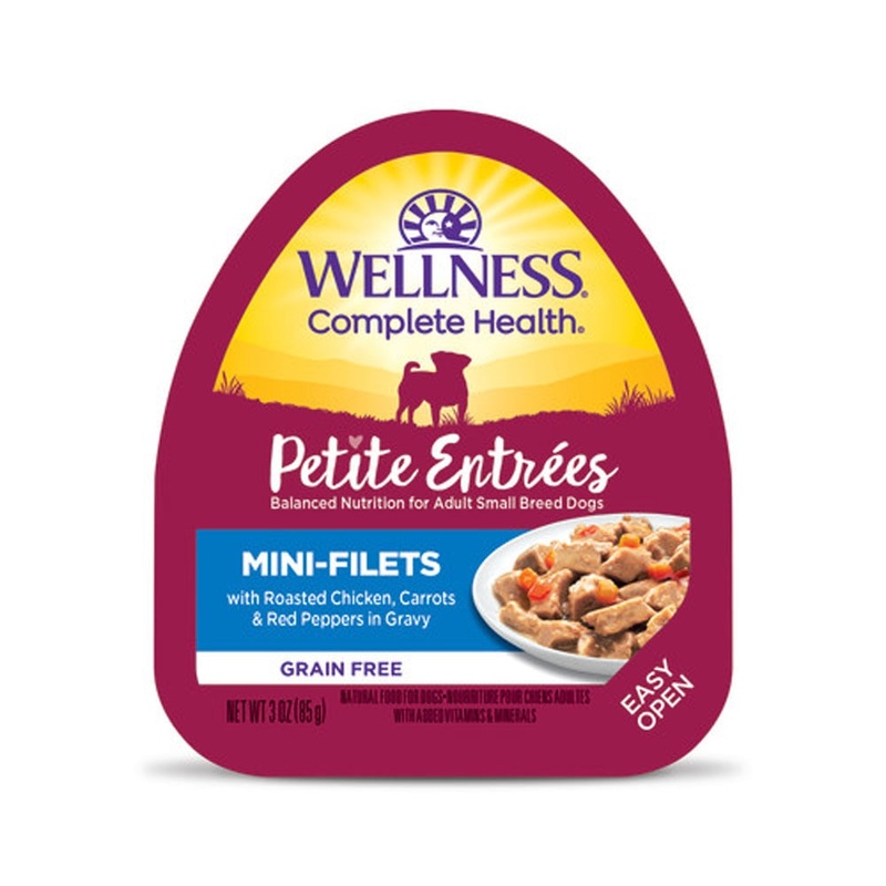 Wellness Petite Entres Mini-Filets with Roasted Chicken, Carrots & Red Peppers in Gravy is formulated to meet the nutritional levels established by the AAFCO Dog Food Nutrient Profiles for maintenance.