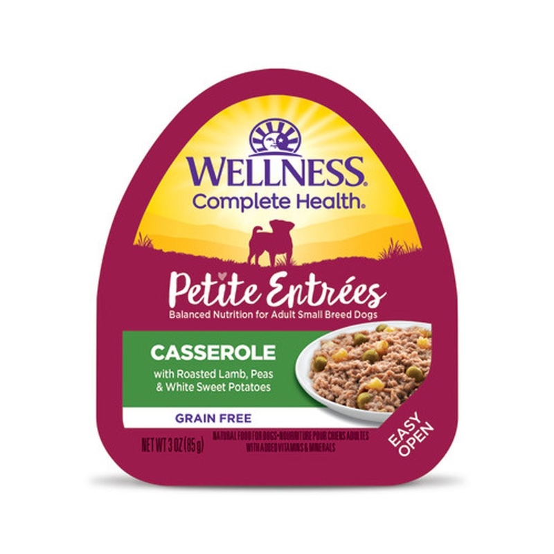 Wellness Petite Entres Casserole with Roasted Lamb, Peas & White Sweet Potatoes is formulated to meet the nutritional levels established by the AAFCO Dog Food Nutrient Profiles for maintenance.