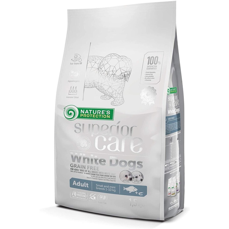 Nature's Protection Superior Care White Dogs Dry Food Grain Free White Fish Adult Small and Mini Breeds No Tear Stain Suitable For Bichon Frise,