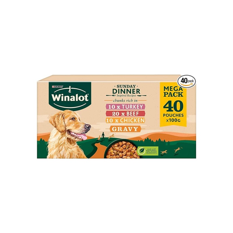 WINALOT Sunday Dinner Adult Wet Dog Food Mixed in Gravy with Turkey, Beef, Chicken 40 x 100g Pouches Pack Includes: 20 x Beef with Potatoes; 10 x...