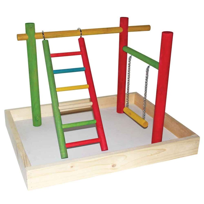 Wooden ladders, perches and swings are like a jungle gym for your favorite smaller bird while outside its cage. These exciting playstands help keep your bird occupied while it's stretching its wings outside the cage. Parakeets, lovebirds and cockatiels wil