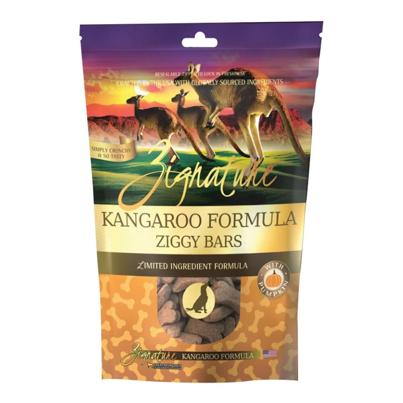 Zignature Kangaroo Ziggy Bars make training time more fun! These tasty treats are formulated with the same limited ingredient philosophy as our dry and canned foods and include healthy, wholesome ingredients like pumpkin to make treat time much more enjoya